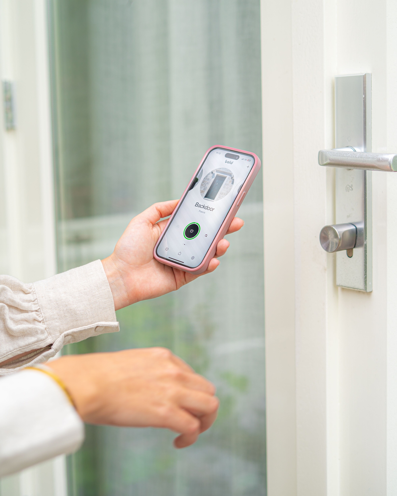 Loop naar de deur met je telefoon in je zak. Bold herkent je direct en activeert automatisch het slot. Draai de knop om en stap moeiteloos naar binnen. Geen sleutels, geen gedoe. Snelle en zorgeloze toegang, precies zoals het hoort.